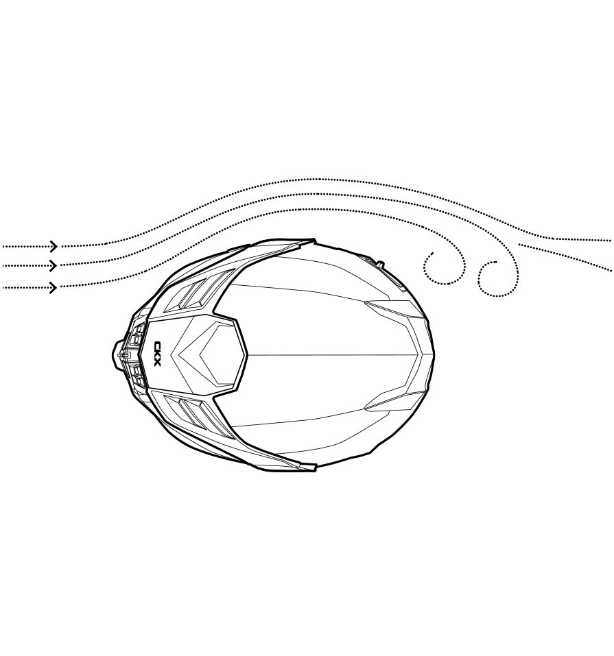 Air always flows through the easiest path. The pressure difference between the inside and the back of the helmet causes the moist air to flow outwards through the AMS channel. This is how the AMS system actively contributes to reducing internal fog.
