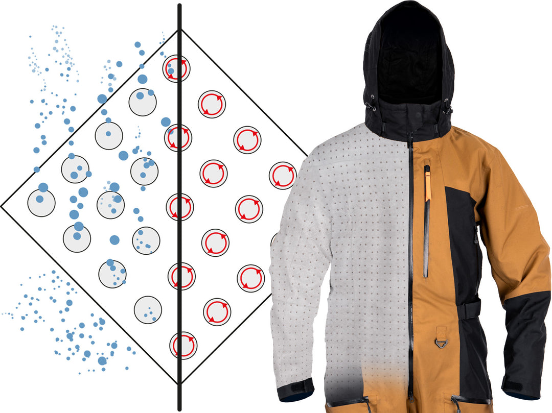 Vivo features a series of small apertures set within the insulation. The holes are uniquely sized to trap air. They also create paths of "least resistance", allowing moisture to escape quickly away from the body.