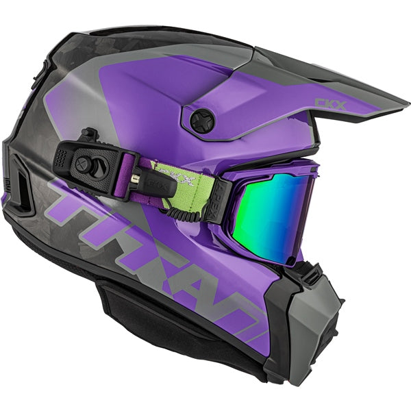 APEX magnetic goggles are now a must-have accessory to complement the Titan AMS. They’ve been engineered to provide a peripheral view that’s so big, they’re practically invisible! They’re also easy to handle and the lenses can be quickly changed. They’re designed to perfectly match the Titan AMS helmet’s opening, thereby providing optimal protection against the cold and snow. Moreover, they come with a RapidClip strap so snowmobilers can easily put them on top of their helmet or to the side with only one hand.